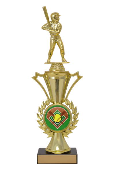 Baseball/softball insrt trophy with a radiance riser on a 3" wide