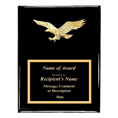 Black piano finish plaque with a gold eagle