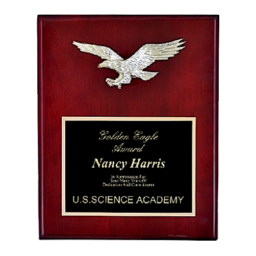 Rosewood piano finish plaque with a gold eagle
